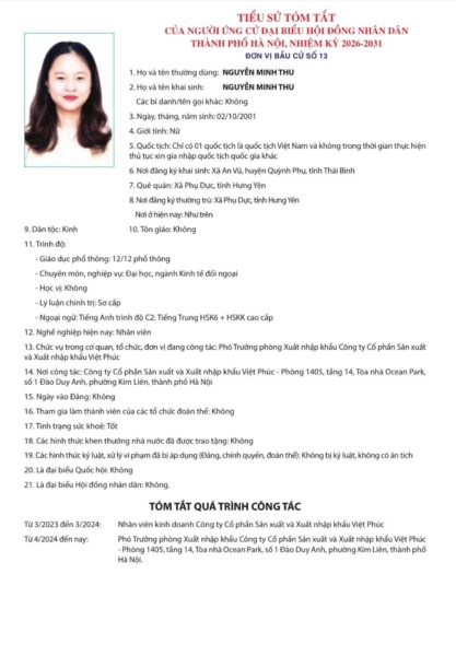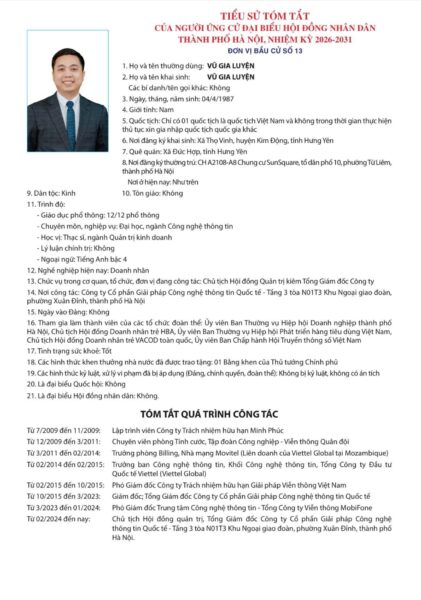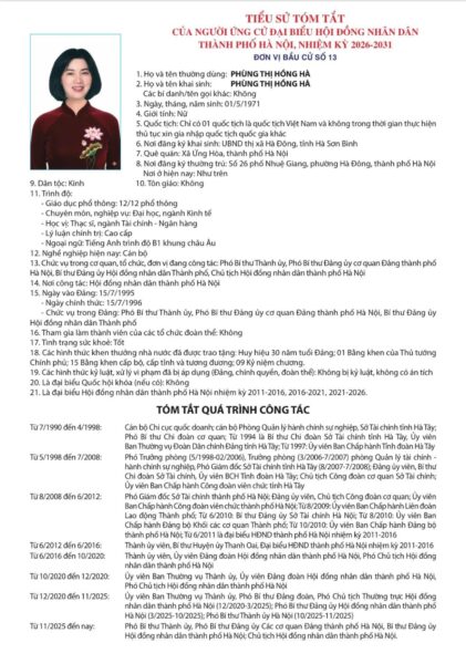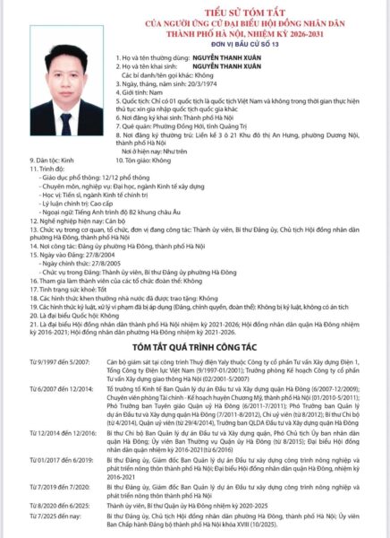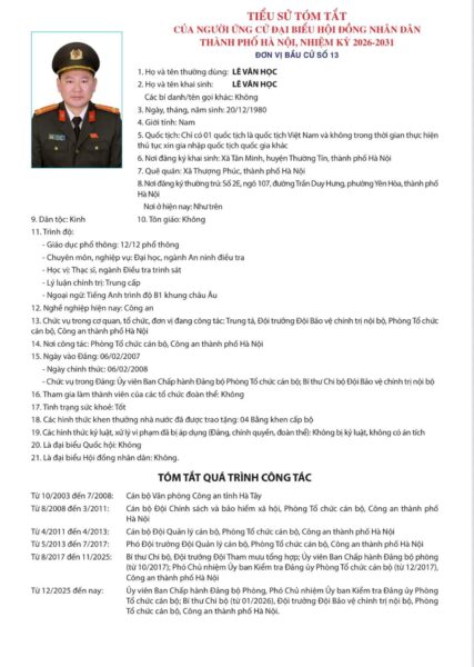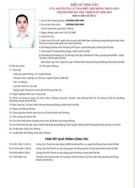 Ủy ban Bầu cử thành phố Hà Nội đã ban hành Quyết định số 50/QĐ-UBBC ngày 20/2/2026 về việc công bố danh sách chính thức những người ứng cử đại biểu Hội đồng nhân dân thành phố Hà Nội khóa XVII, nhiệm kỳ 2026 – 2031.