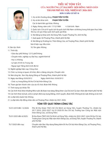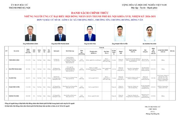 Đơn vị bầu cử số 18 gồm các xã: Thượng Phúc, Thường Tín, Chương Dương, Hồng Vân: Số người ứng cử là 05 người, số người được bầu là 03 người.