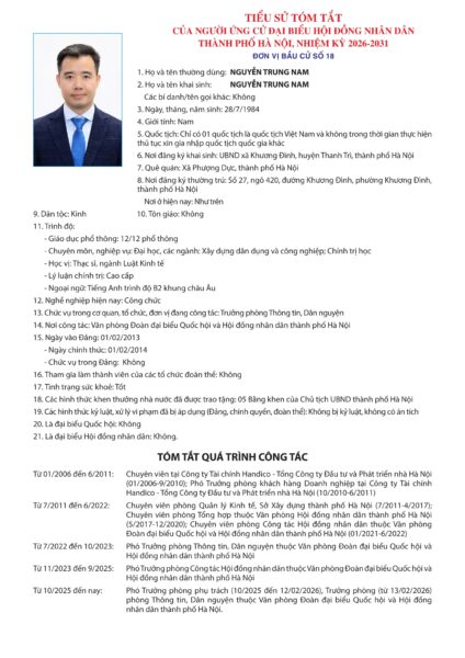 Ủy ban Bầu cử thành phố Hà Nội đã ban hành Quyết định số 50/QĐ-UBBC ngày 20/2/2026 về việc công bố danh sách chính thức những người ứng cử đại biểu Hội đồng nhân dân thành phố Hà Nội khóa XVII, nhiệm kỳ 2026 – 2031.