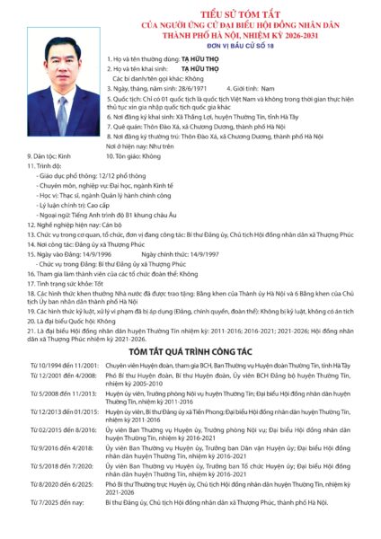 Căn cứ danh sách những người đủ tiêu chuẩn ứng cử đại biểu Hội đồng nhân dân thành phố Hà Nội nhiệm kỳ 2026 – 2031 kèm theo Biên bản Hội nghị hiệp thương lần thứ ba ngày 11/2/2026 của Ủy ban Mặt trận Tổ quốc Việt Nam thành phố Hà Nội;