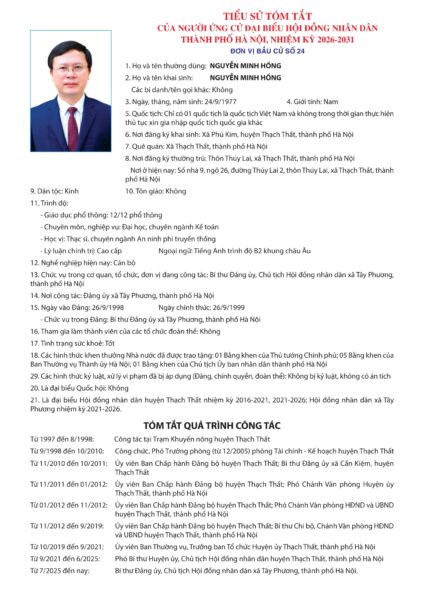 Căn cứ danh sách những người đủ tiêu chuẩn ứng cử đại biểu HĐND thành phố Hà Nội nhiệm kỳ 2026 – 2031 kèm theo Biên bản Hội nghị hiệp thương lần thứ ba ngày 11/2/2026 của Ủy ban Mặt trận Tổ quốc Việt Nam thành phố Hà Nội;