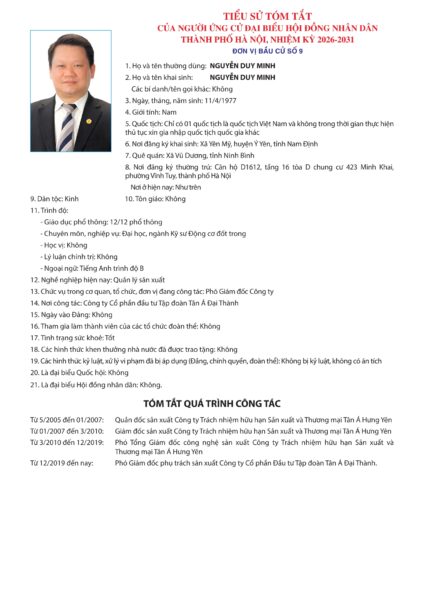 Căn cứ danh sách những người đủ tiêu chuẩn ứng cử đại biểu Hội đồng nhân dân thành phố Hà Nội nhiệm kỳ 2026 – 2031 kèm theo Biên bản Hội nghị hiệp thương lần thứ ba ngày 11/2/2026 của Ủy ban Mặt trận Tổ quốc Việt Nam thành phố Hà Nội;