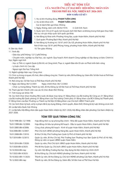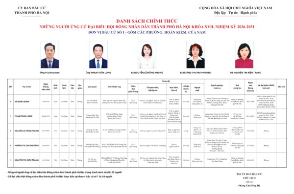 Ủy ban Bầu cử TP Hà Nội đã ban hành Quyết định số 50/QĐ-UBBC ngày 20/2/2026 về việc công bố danh sách chính thức những người ứng cử đại biểu Hội đồng nhân dân thành phố Hà Nội khóa XVII, nhiệm kỳ 2026 – 2031.