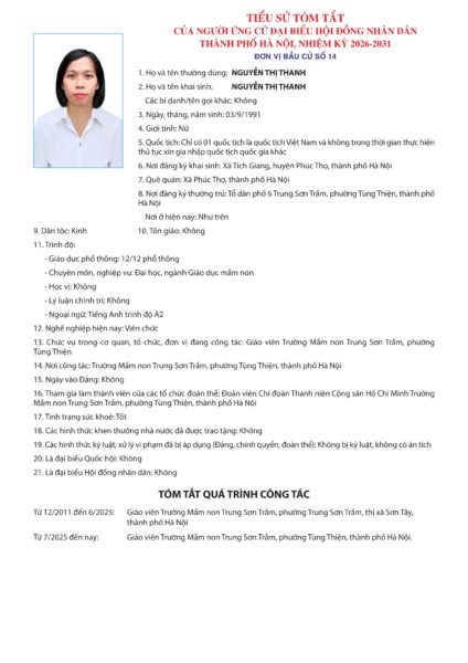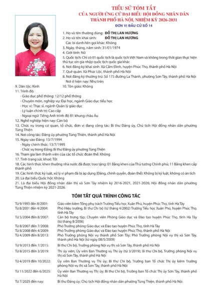 Đơn vị bầu cử số 14 gồm các phường: Sơn Tây, Tùng Thiện và xã Đoài Phương. Tổng số người ứng cử đại biểu Hội đồng nhân dân thành phố Hà Nội trong danh sách là 05 người, số đại biểu được bầu là: 03 người