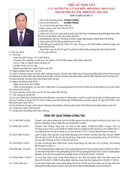 Ủy ban Bầu cử TP Hà Nội đã ban hành Quyết định số 50/QĐ-UBBC ngày 20/2/2026 về việc công bố danh sách chính thức những người ứng cử đại biểu Hội đồng nhân dân thành phố Hà Nội khóa XVII, nhiệm kỳ 2026 – 2031.