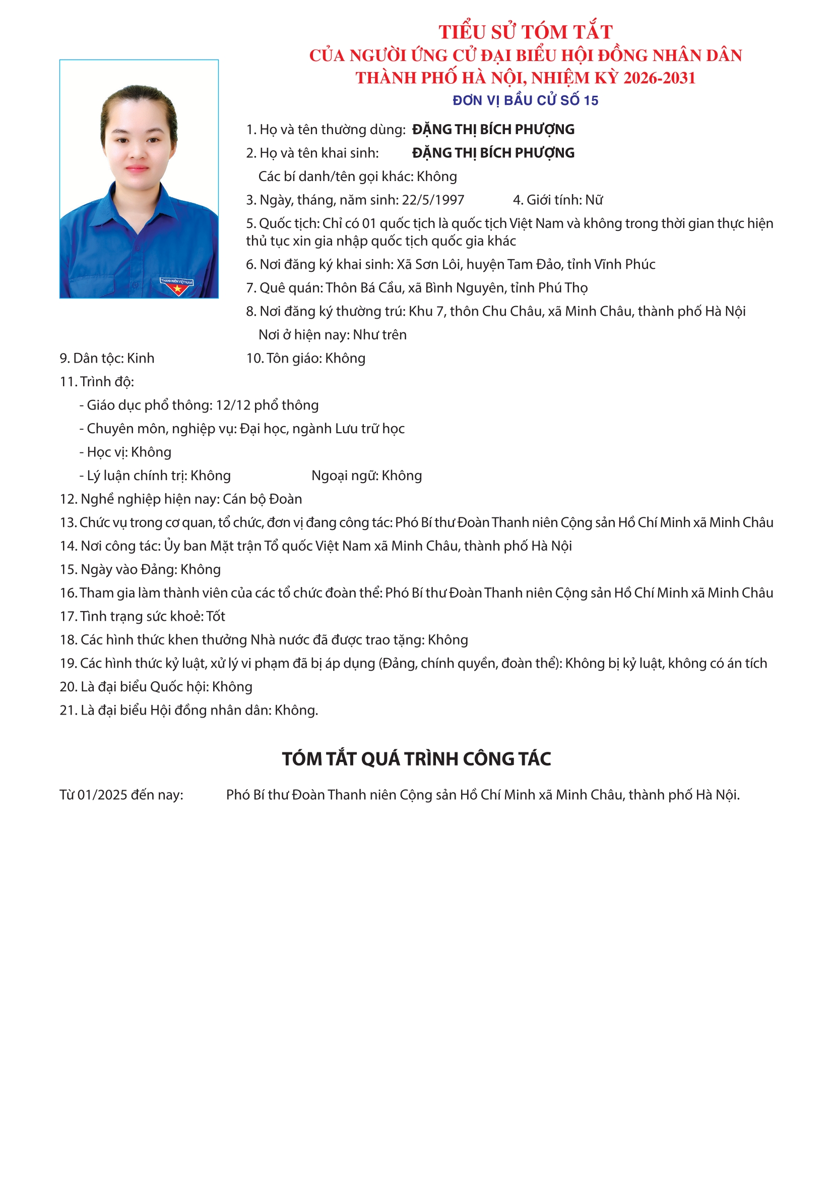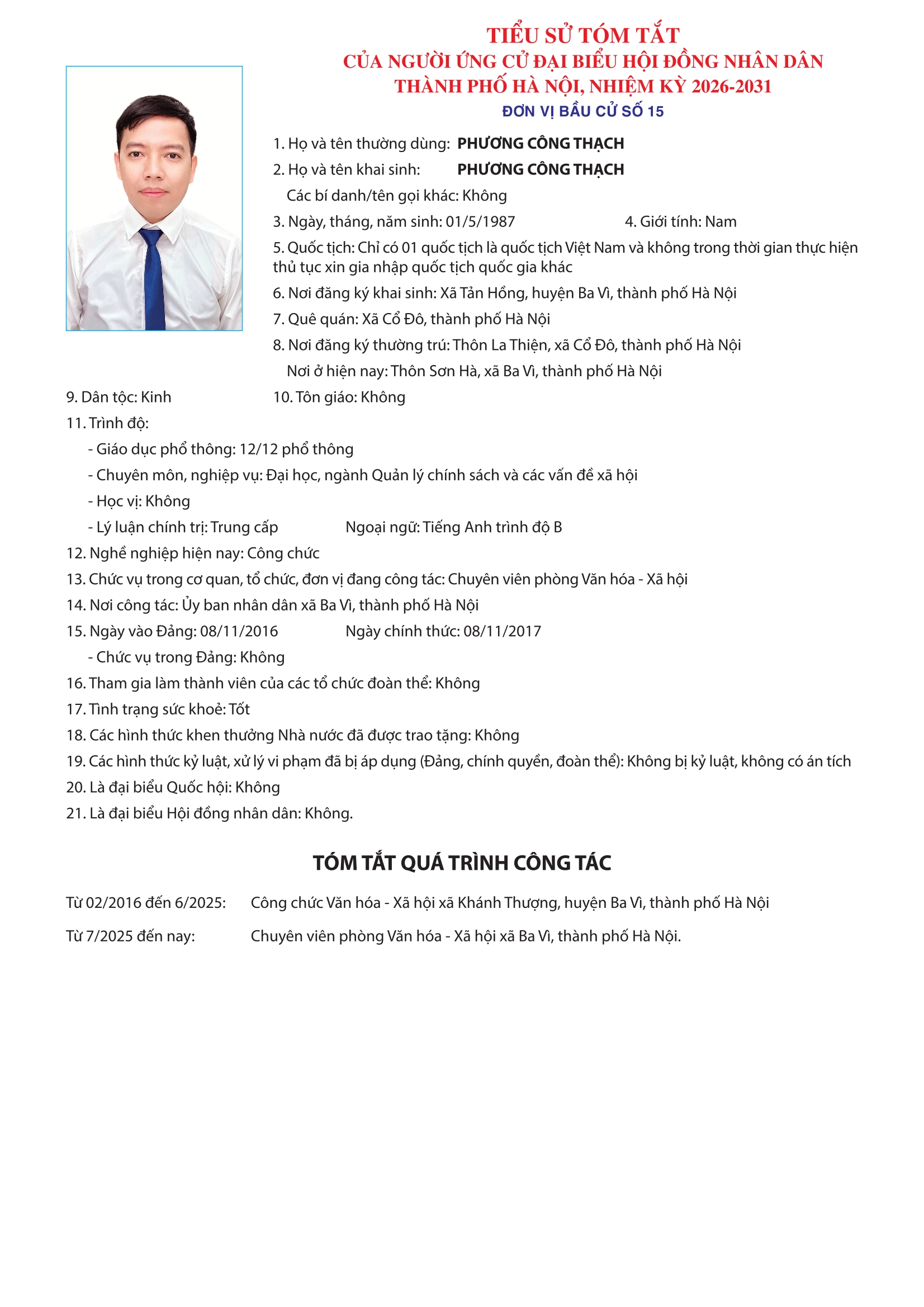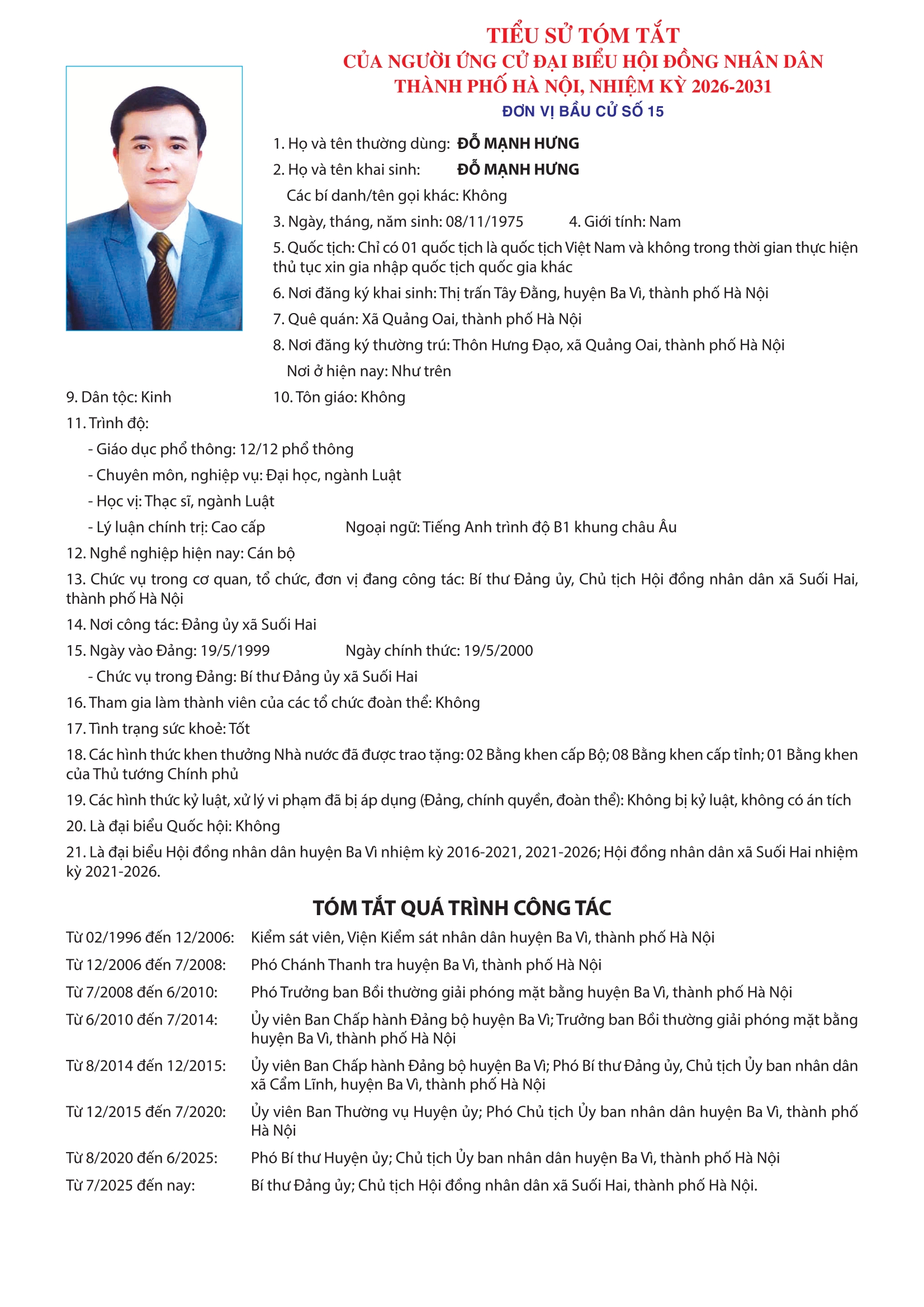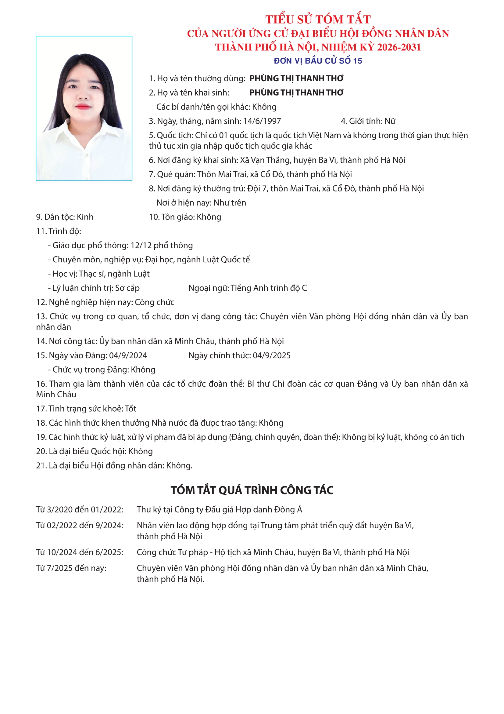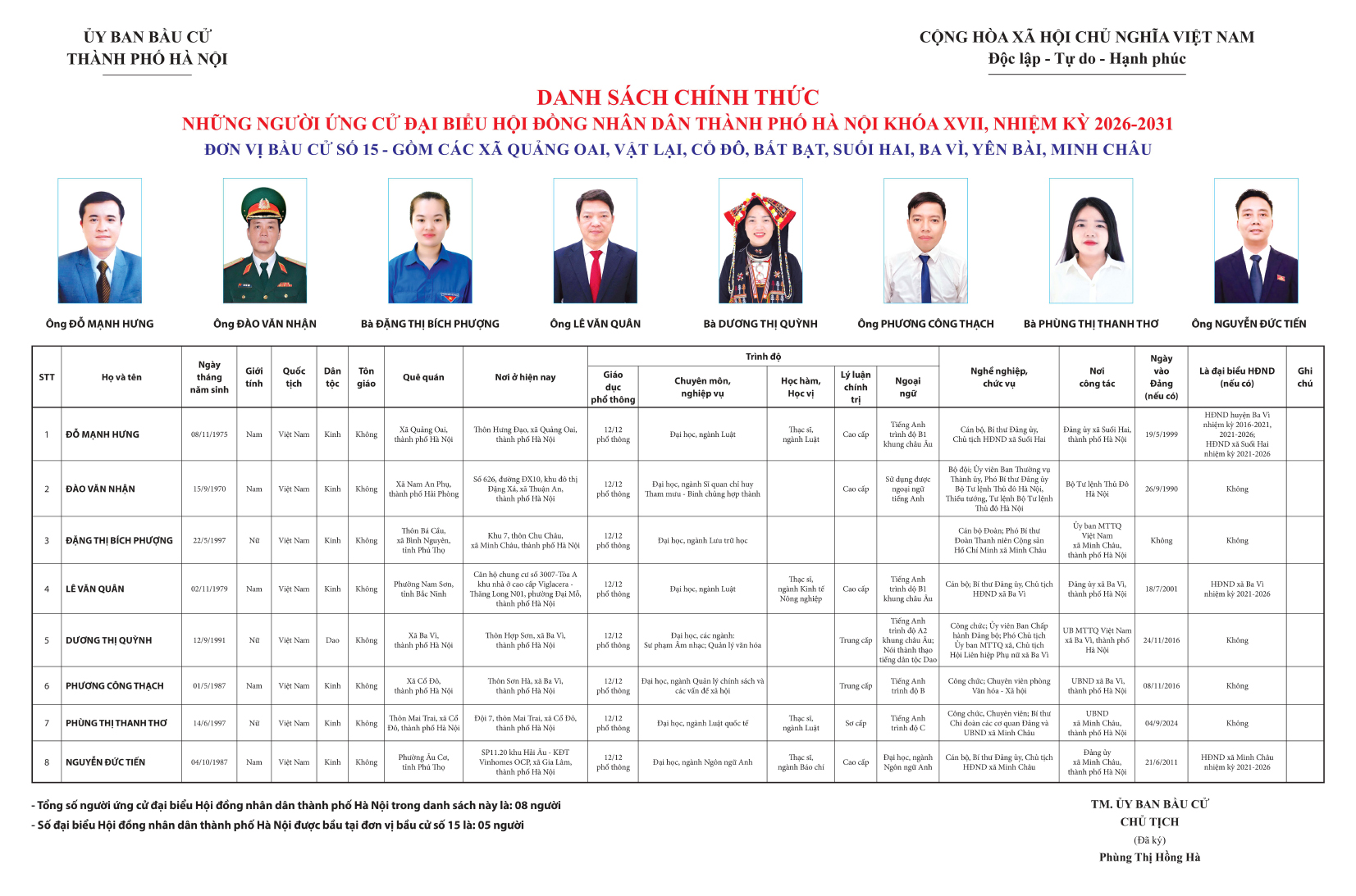 Tổng số người ứng cử đại biểu Hội đồng nhân dân thành phố Hà Nội trong danh sách là: 08 người.