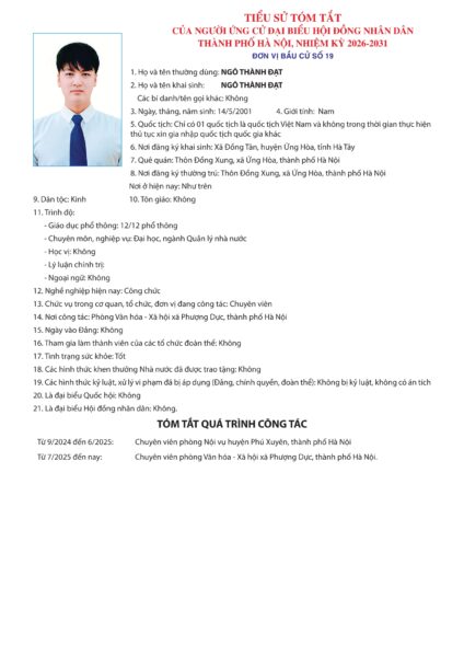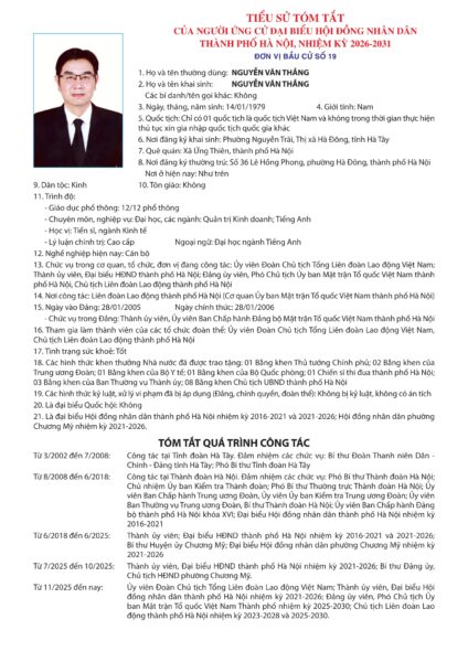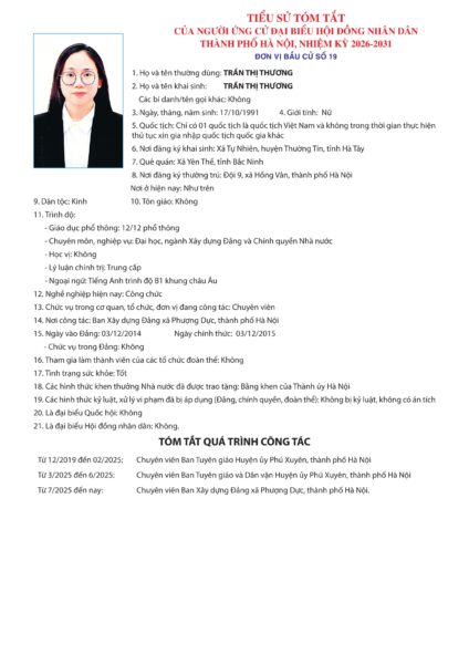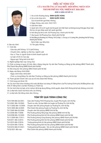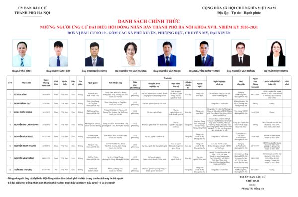 Những người ứng cử đại biểu HĐND TP Hà Nội nhiệm kỳ 2026-2031: Đơn vị bầu cử số 19