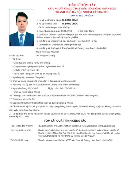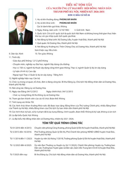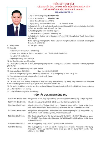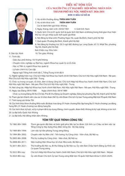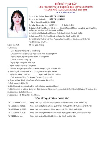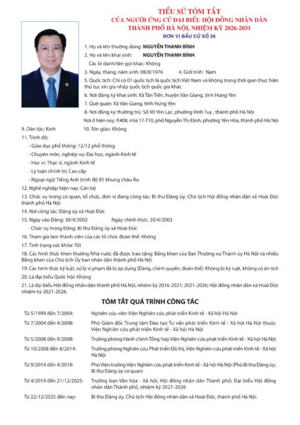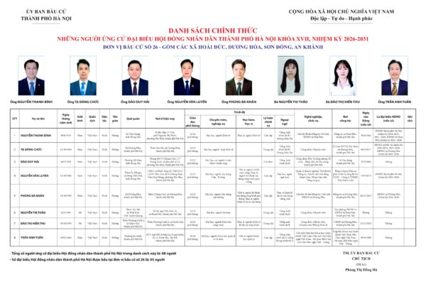 Danh sách chính thức những người ứng cử được xác lập trên cơ sở danh sách những người đủ tiêu chuẩn ứng cử kèm theo Biên bản Hội nghị hiệp thương lần thứ ba ngày 11/2/2026 của Ủy ban Mặt trận Tổ quốc Việt Nam TP Hà Nội.