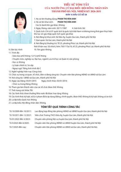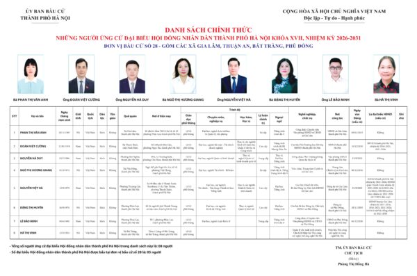 Đơn vị bầu cử số 28 gồm các xã Gia Lâm, Thuận An, Bát Tràng, Phù Đổng. Tổng số người ứng cử đại biểu Hội đồng nhân dân thành phố Hà Nội trong danh sách là 05 người, số đại biểu được bầu là 03 người.