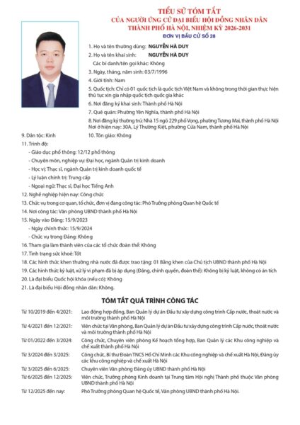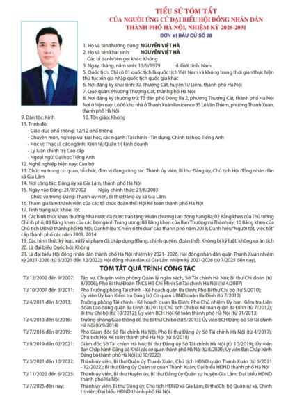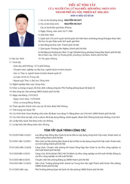 Ủy ban Bầu cử TP Hà Nội đã ban hành Quyết định số 50/QĐ-UBBC ngày 20/2/2026 về việc công bố danh sách chính thức những người ứng cử đại biểu Hội đồng nhân dân thành phố Hà Nội khóa XVII, nhiệm kỳ 2026 – 2031.