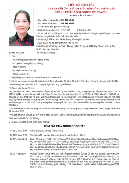 Căn cứ danh sách những người đủ tiêu chuẩn ứng cử đại biểu Hội đồng nhân dân thành phố Hà Nội nhiệm kỳ 2026 – 2031 kèm theo Biên bản Hội nghị hiệp thương lần thứ ba ngày 11/2/2026 của Ủy ban Mặt trận Tổ quốc Việt Nam thành phố Hà Nội;
