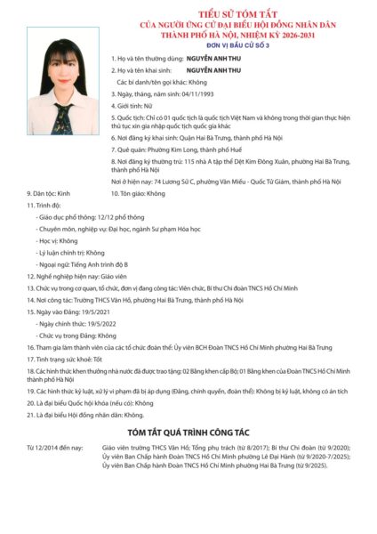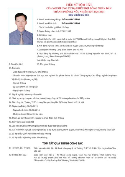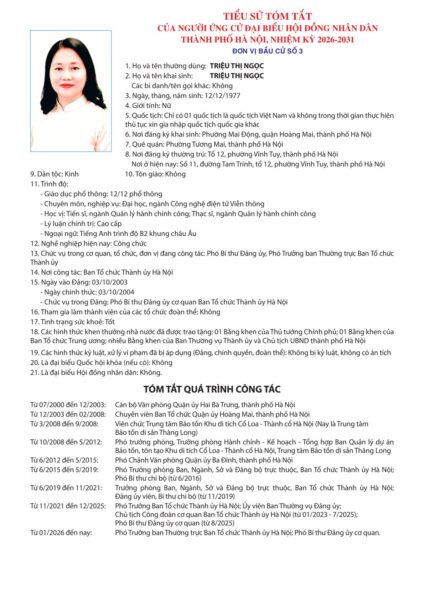 Những người ứng cử đại biểu HĐND TP Hà Nội nhiệm kỳ 2026-2031 ở Đơn vị bầu cử số 3
