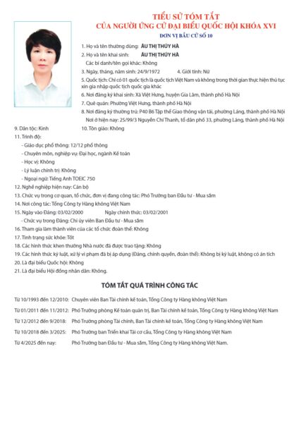 Dưới đây là Tiểu sử tóm tắt của các ứng cử viên: