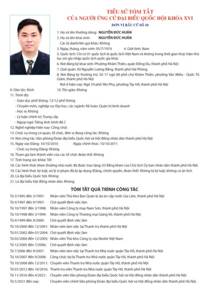 Những người ứng cử Đại biểu Quốc hội khóa XVI ở Đơn vị bầu cử số 10