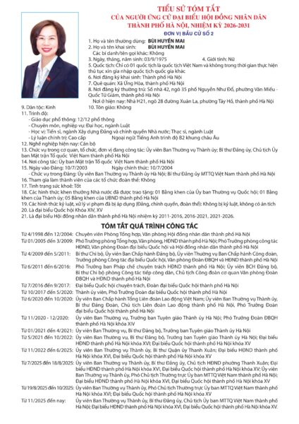 Tại Đơn vị bầu cử số 2, tổng số người ứng cử đại biểu HĐND Thành phố Hà Nội trong danh sách chính thức là 05 người. Theo quy định, số đại biểu HĐND Thành phố Hà Nội được cử tri bầu chọn tại đơn vị này là 03 người.
