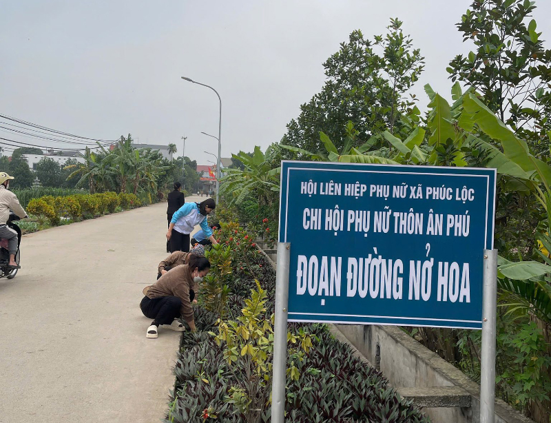 Nổi bật trong chuỗi hoạt động là việc Hội Liên hiệp Phụ nữ xã Phúc Lộc phối hợp với Chi hội Phụ nữ thôn Ân Phú tổ chức ra quân chăm sóc, trồng bổ sung và gắn biển công trình “Đoạn đường nở hoa”. Tại buổi ra quân, cán bộ, hội viên phụ nữ đã tích cực dọn cỏ, thu gom rác thải, vệ sinh môi trường và chỉnh trang tuyến đường. Đặc biệt, hơn 50 cây hoa vàng anh được trồng bổ sung dọc tuyến đã góp phần tạo điểm nhấn cảnh quan tươi sáng, thân thiện, nâng cao chất lượng môi trường sống tại khu dân cư.
