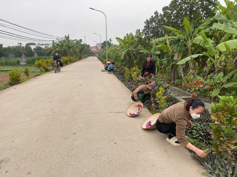 Phụ nữ Phúc Lộc ra quân chăm sóc tuyến đường hoa, chung tay hướng tới ngày hội bầu cử