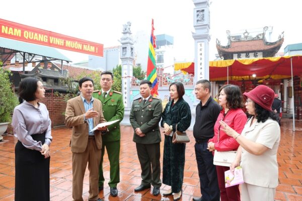 Kiểm tra công tác chuẩn bị lễ hội tại đình Văn La. Ảnh: BN