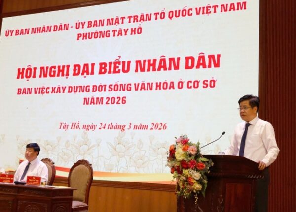 Chiều 24/3, UBND và Ủy ban MTTQ Việt Nam phường Tây Hồ tổ chức Hội nghị đại biểu nhân dân bàn việc xây dựng đời sống văn hóa ở cơ sở năm 2026, với sự tham gia của đông đảo đại biểu đại diện các TDP, khu dân cư trên địa bàn.