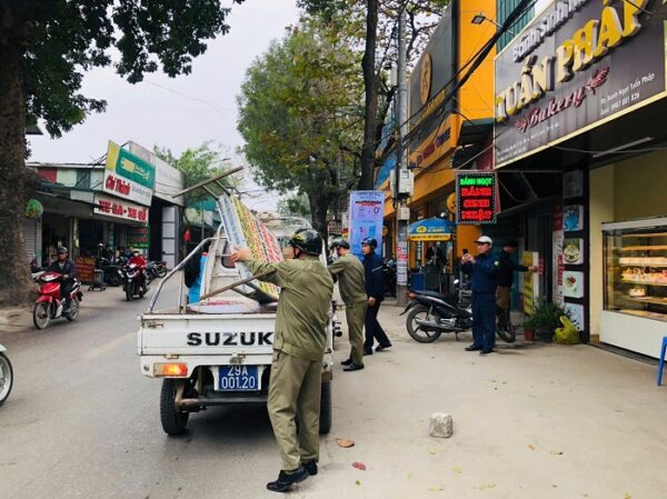 Lực lượng ra quân gồm lãnh đạo UBND, Công an, Trưởng các ngành, đoàn thể, an ninh cơ sở, tự quản, cán bộ tổ dân phố. Kết quả đã tháo dỡ 18 biển quảng cáo sai quy định, lấn chiếm vỉa hè, lòng đường, cắt bỏ 5 mái che, mái vẩy, thu giữ 5 bộ bàn ghế nhựa, 3 ô dù, 4 xe đẩy bán hàng, giải tỏa 2 bục bệ.