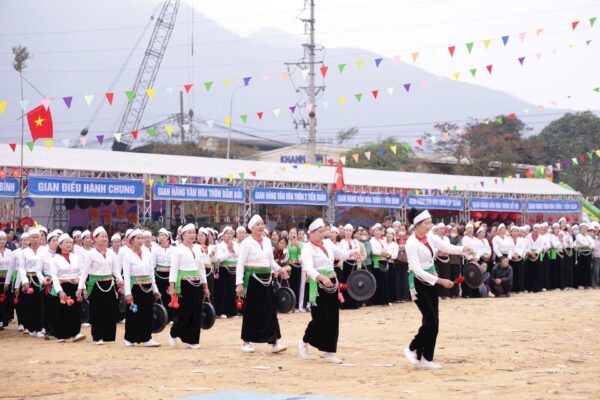 Đồng diễn chiêng Mường. Ảnh: Hoa Phượng