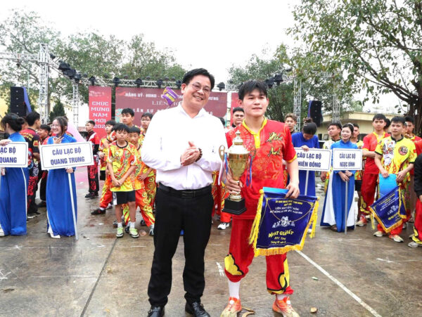 Ban Tổ chức trao giải Nhất cho Câu lạc bộ Lân sư rồng Phúc Anh. Ảnh: TH