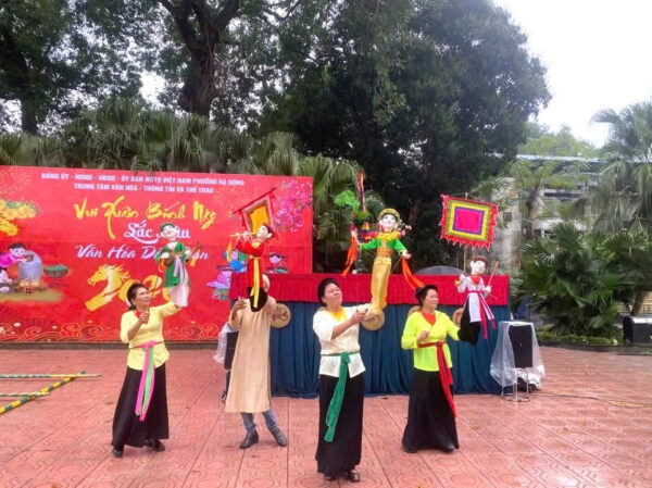 Điểm nhấn của chương trình là chuỗi hoạt động nghệ thuật và trải nghiệm dân gian được dàn dựng công phu, tạo nên bức tranh mùa xuân sinh động và giàu tính tương tác. Màn hòa tấu nhạc cụ truyền thống và biểu diễn múa rối cạn của Phường rối cạn Tế Tiêu đã mở đầu chương trình bằng không khí rộn ràng, tái hiện sinh động đời sống văn hóa dân gian Bắc Bộ.