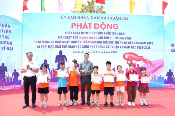 Chào mừng 80 năm Ngày truyền thống ngành Thể dục thể thao, sáng 22/3, UBND xã Thuận An đã tổ chức Ngày chạy Olympic vì sức khỏe toàn dân, phát động giải chạy Hànộimới lần thứ 51- Vì hòa bình  năm 2026 và khai mạc Giải thể thao học sinh phổ thông năm học 2025-2026.