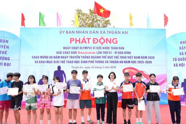 Chào mừng 80 năm Ngày truyền thống ngành Thể dục thể thao, sáng 22/3, UBND xã Thuận An đã tổ chức Ngày chạy Olympic vì sức khỏe toàn dân, phát động giải chạy Hànộimới lần thứ 51- Vì hòa bình  năm 2026 và khai mạc Giải thể thao học sinh phổ thông năm học 2025-2026.