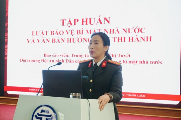Tại buổi tập huấn, các đại biểu được nghe báo cáo viên Trung tá Nguyễn Thị Tuyết, Đội trưởng Đội an ninh Dân chính Đảng và Bảo vệ bí mật nhà nước, Phòng An ninh Chính trị nội bộ, Công an thành phố Hà Nội trao đổi các nội dung: Luật Bảo vệ bí mật nhà nước số 29/2018/QH14 ngày 15/11/2018 của Quốc hội và các văn bản hướng dẫn thi hành cùng những văn bản quan trọng về bảo vệ BMNN; Các Danh mục BMNN do Thủ tướng Chính phủ ban hành đối với ngành văn hóa thể thao; Các văn bản quy định của pháp luật về công tác bảo vệ BMNN trên không gian mạng; Kiến thức, kỹ năng cơ bản về bảo vệ BMNN; bổ sung kiến thức về văn thư – lưu trữ có liên quan BMNN; Các quy định chung về chế độ, chính sách, nguyên tắc, trách nhiệm và các hành vi bị cấm trong bảo vệ BMNN; biểu mẫu sử dụng trong công tác bảo vệ BMNN; Các nguyên tắc, quy định về bàn giao, thu hồi tài liệu, vật chứa BMNN khi cán bộ công chức nghỉ hưu, chuyển công tác; Công tác quản lý, dẫn đoàn đi giao lưu, học tập, thi đấu; Các nội dung phòng ngừa như vô ý tiết lộ các nội dung liên quan BMNN đã được tiếp cận; trường hợp mang BMNN (thiết bị, tài liệu) không đúng quy định, không được được phép của cấp có thẩm quyền; Tình hình, thực trạng, tồn tại, hạn chế về công tác bảo vệ BMNN, trong đó có công tác bảo vệ BMNN trên không gian mạng; phương hướng, giải pháp bảo vệ BMNN tại cơ quan, địa phương.