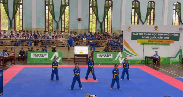 Môn vovinam thi đấu từ ngày 10-14/6/2025 tại trường Quốc học Huế, thu hút 593 vận động viên (VĐV) học sinh, đến từ 28 tỉnh, thành, tranh tài ở 53 bộ Huy chương, gồm 24 Huy chương thi đấu đối kháng, 29 bộ Huy chương thi quyền.