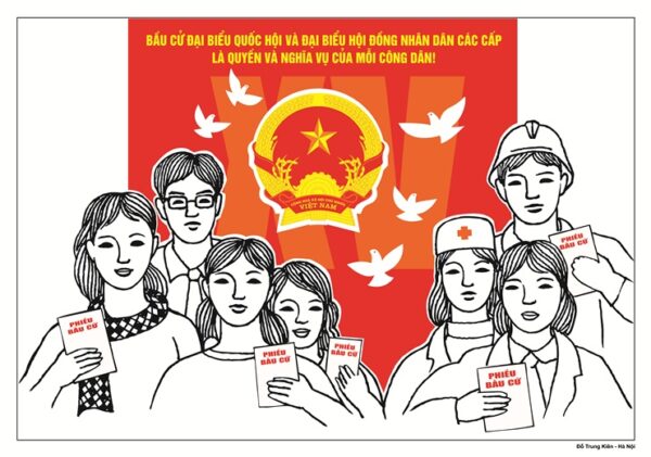 Tranh của họa sĩ Đỗ Trung Kiên tham gia Cuộc thi sáng tác tranh cổ động tuyên truyền bầu cử ĐBQH khóa XV và đại biểu HĐND các cấp nhiệm kỳ 2021-2026