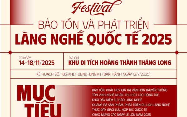 Festival Bảo tồn và Phát triển làng nghề quốc tế năm 2025 được tổ chức từ ngày 14/11 đến 18/11/2025 tại Khu di tích Hoàng thành Thăng Long – Hà Nội, theo Kế hoạch liên tịch số 185/KHLT-UBND-BNNMT giữa UBND Thành phố và Bộ Nông nghiệp và Môi trường, với quy mô 350 gian hàng, dự kiến có sự tham gia của các tỉnh, thành phố trong cả nước và các nghệ nhân đến từ 30 quốc gia, vùng lãnh thổ.
