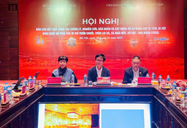 Ngày 28/11, tại Bảo tàng Hà Nội đã diễn ra Hội nghị báo cáo kết quả công tác chỉnh lý, nghiên cứu, bảo quản và xây dựng hồ sơ khoa học di tích, di vật khai quật gò phía Tây – di chỉ Vườn Chuối, thôn Lai Xá, huyện Hoài Đức, Hà Nội, giai đoạn 1/2025.