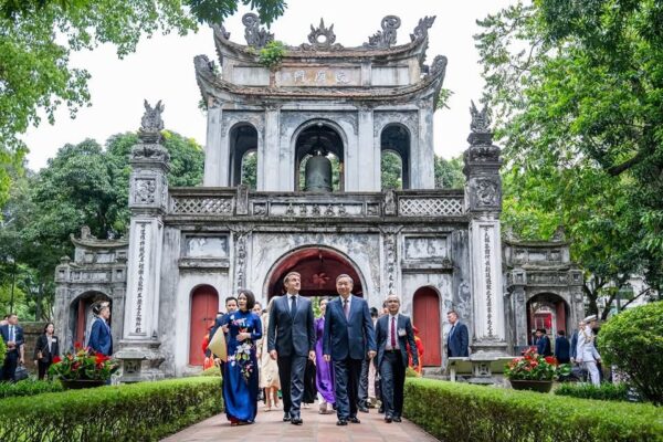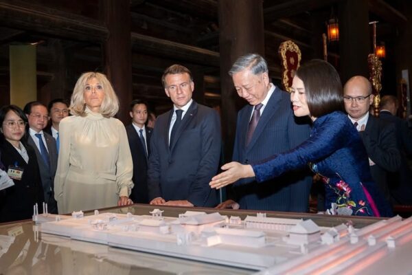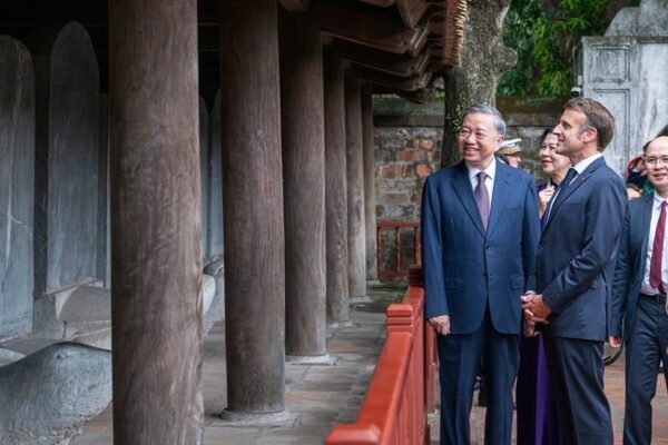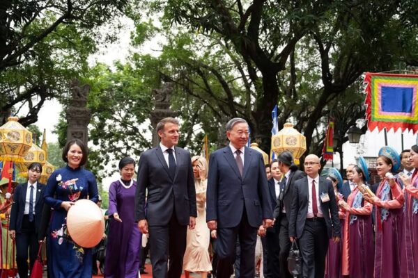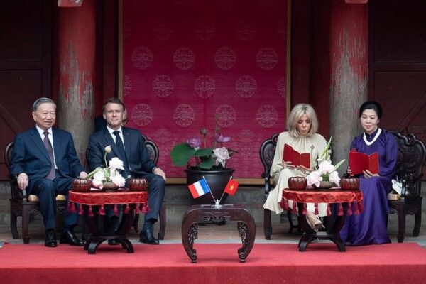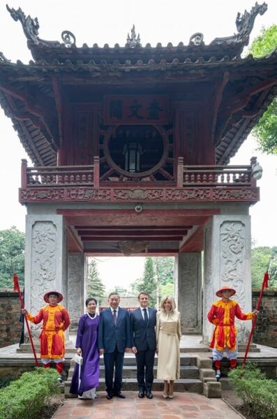 Trưa 26/5, trong không gian trang nghiêm và cổ kính của Khu di tích Văn Miếu – Quốc Tử Giám, Tổng Bí thư Ban Chấp hành Trung ương Đảng Cộng sản Việt Nam Tô Lâm cùng phu nhân đã long trọng đón tiếp Tổng thống Cộng hòa Pháp Emmanuel Macron và phu nhân trong khuôn khổ chuyến thăm chính thức Việt Nam.