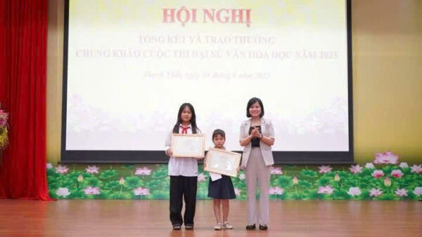 Nhân dịp tổng kết Cuộc thi, Ban tổ chức đã khen thưởng, tặng giấy chứng nhận cho 67 thí sinh các trường Tiểu học, THCS đạt giải trong Cuộc thi Đại sứ văn hoá đọc huyện Thạch Thất năm 2025, gồm 2 giải Nhất, 10 giải Nhì, 20 giải Ba, 35 giải Khuyến khích, trong đó thí sinh Kiều Phương Khánh Huyền – lớp 1C trường Tiểu học Thạch Xá và thí sinh Nguyễn Bảo Trâm – lớp 7A9, trường THCS Hữu Bằng đã đạt giải Nhất.