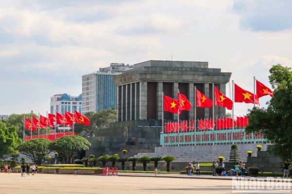 Hà Nội trang trí cờ, hoa kỷ niệm 80 năm Cách mạng tháng Tám và Quốc khánh 2/9. Ảnh minh hoạ