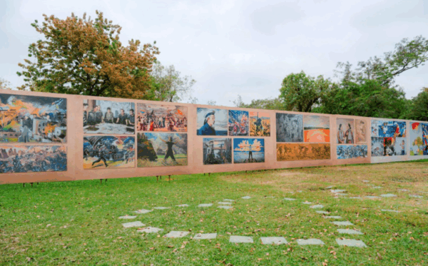 Trong khuôn viên ngoài trời của công viên Thống Nhất, Hà Nội, các tác phẩm hội họa được giới thiệu đến công chúng như những lát cắt sống động về hành trình dựng nước và giữ nước của dân tộc.