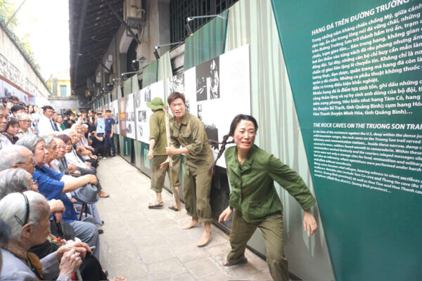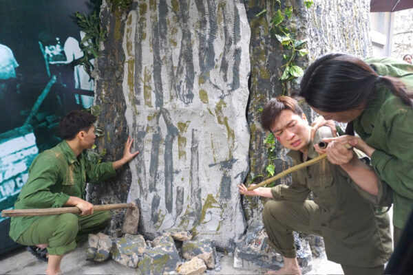 Cùng với những tư liệu, hình ảnh, hiện vật, không gian Trưng bày chuyên đề “Khúc ca hòa bình” còn tạo điểm nhấn khi tái hiện tổ hợp Hang đá trên đường Trường Sơn, phần nào tái hiện sinh động cuộc sống gian khổ nhưng kiên cường của những người lính, những y bác sĩ, những chàng trai, cô gái thanh niên xung phong ngày đêm bám trụ nơi rừng thiêng, nước độc, bất chấp hiểm nguy để giữ vững huyết mạch giao thông. Biểu diễn hoạt cảnh tái hiện câu chuyện về công tác cứu hộ tám thanh niên xung phong tại đường 20 Quyết Thắng, thuộc xã Sơn Trạch, huyện Bố Trạch, tỉnh Quảng Bình bị mắc kẹt trong hang đá vào năm 1972… mang lại cho công chúng nhiều cung bậc cảm xúc.