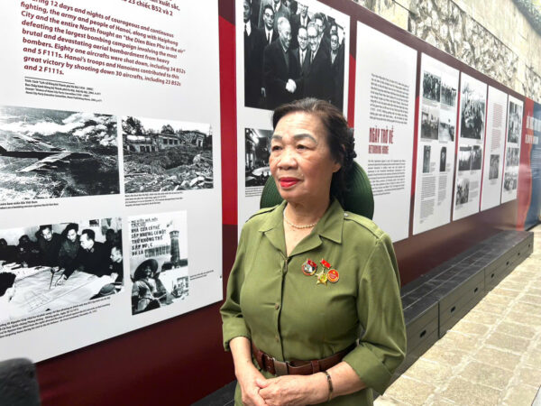 Bà Cao Thị Hạnh Kiểm, nguyên Chủ tịch Hội Cựu Thanh niên xung phong quận Thanh Xuân chia sẻ khi dự khai mạc Trưng bày