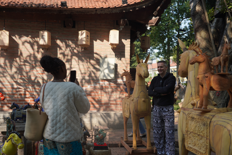 Đáng chú ý, không gian trưng bày được bố trí phía sau khuôn viên nhà Thái Học – khu vực trước đây ít được du khách chú ý. Với cách sắp đặt hài hoà giữa cảnh quan di tích và các tác phẩm nghệ thuật, nơi đây trở nên sinh động với những hình ảnh con ngựa mộc mạc, gần gũi, tạo nên trải nghiệm mới mẻ cho người xem, đồng thời mở rộng không gian tiếp cận di sản.