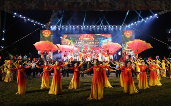 Chương trình gồm 10 tiết mục văn nghệ được dàn dựng công phu, đặc sắc, tập trung ca ngợi Đảng Cộng sản Việt Nam, Chủ tịch Hồ Chí Minh; ca ngợi quê hương, đất nước, truyền thống yêu nước và tinh thần đại đoàn kết toàn dân tộc; phản ánh những thành tựu nổi bật trong công cuộc đổi mới, xây dựng và phát triển đất nước. Bên cạnh đó, chương trình còn trình chiếu 02 phóng sự giới thiệu về kết quả thực hiện mô hình chính quyền địa phương 2 cấp tại xã An Khánh và công tác tổ chức bầu cử trên địa bàn.